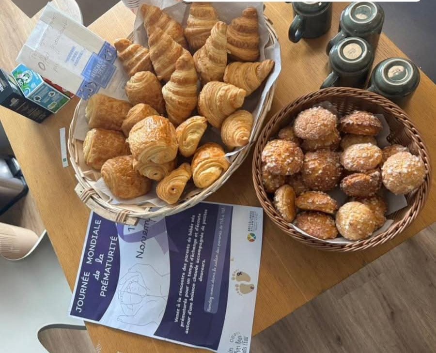 La réalisation de cette journée n’aurait pas pu être possible sans l’implication de nombreuses collègues du service de Néonatologie, la participation de l’association mais également de la boulangerie « La Huche à Pain » qui a offert pleins de viennoiseries pour rendre le moment convivial ; un grand merci à eux !